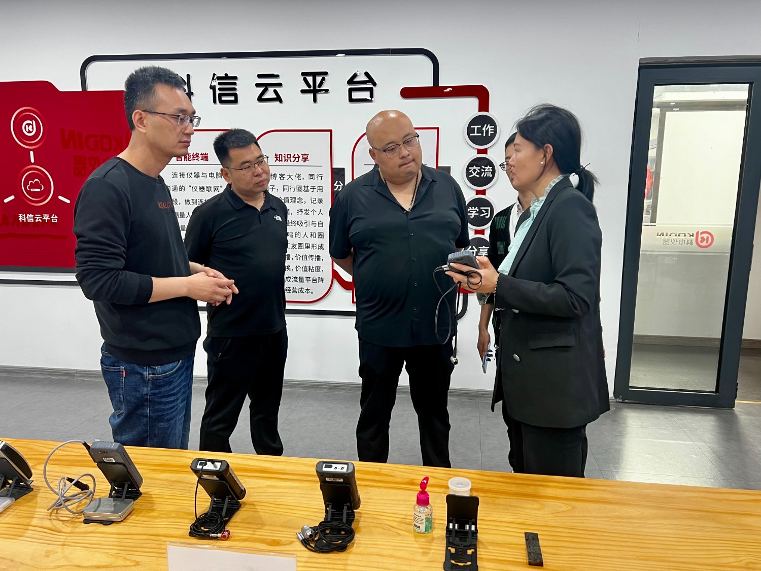 參觀期間,何總和閆工對(duì)科電儀器發(fā)展歷程、組織架構(gòu)、科技創(chuàng)新等方面有了深層次了解,并在技術(shù)工程師演示下,